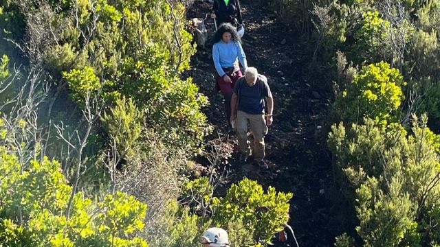 Nous voilà maintenant à quelques mètres de Ducati, mais un mur de salsepareilles nous en sépare. JC tente un contournement et atteint l’entrée par le haut, ce qui permet de guider le reste de l’équipe et d’ouvrir un accès direct depuis le sentier.