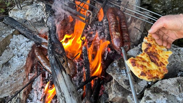 C’est maintenant la 3ème mi-temps, c’est l’heure de ripailler. Les topi aiment la nature et tous les plaisirs alimentaires qu’elle peut offrir. Pas moins de 3 figatelli et autres grillades, divers fromages, panette, panettone, chocolats permettent de quitter bien repus ce haut lieu de la spéléo insulaire.