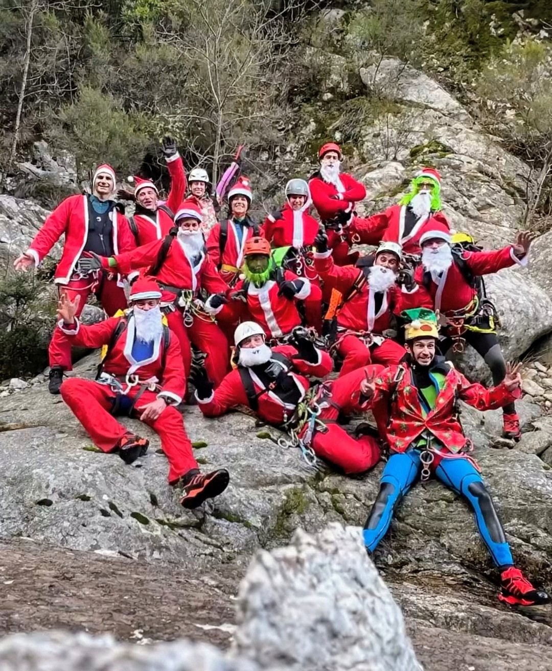 Entre le masque du Grinch à Benoît, et la désormais habituelle perruque verte à Anto, ce ne sont pas moins de 14 guys rouges qui dévalent ce canyon.