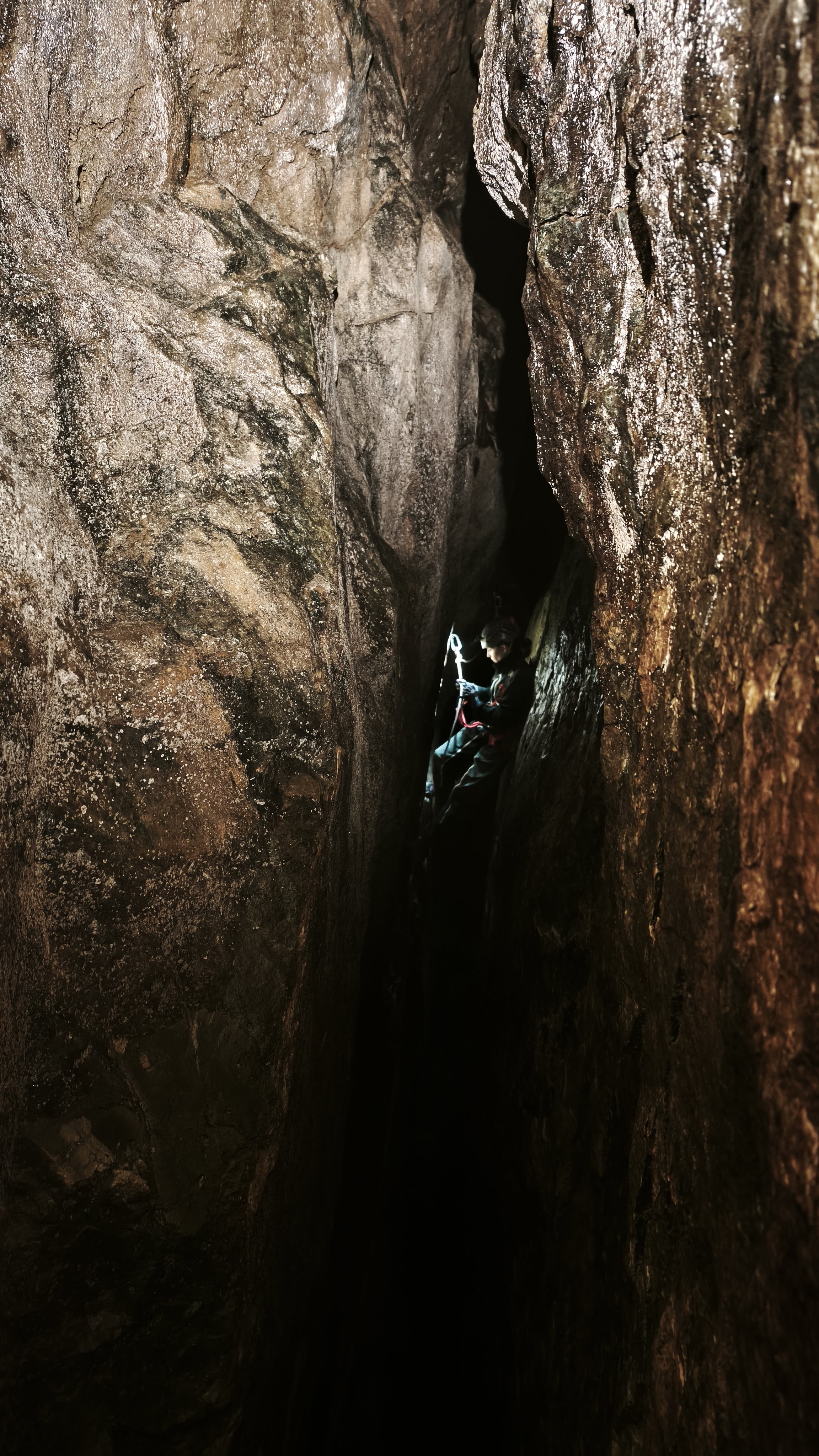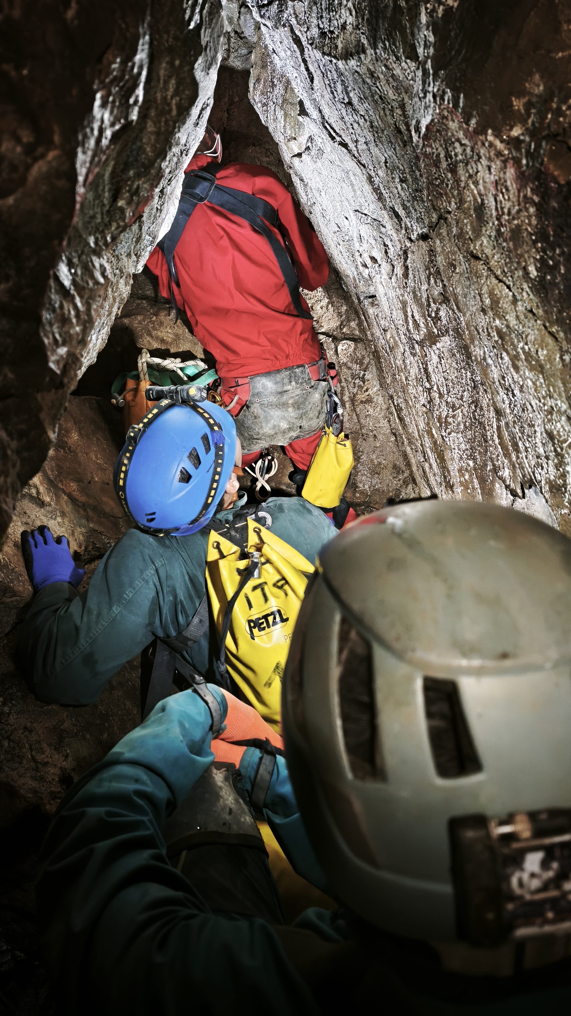 On amorce le retour, Cathy était en train d’équiper le réseau secondaire pendant que nous visitions le réseau classique, A titre perso je m’arrête là, le passage de la chatière c’est pas pour moi.. ce sont donc engagé tout le monde pour ce réseau et moi en attente devant l’entrée, face à ce courant d’air, en pensant être un peu plus au chaud. Au final je décide de remonter et d’attendre les autres dehors.