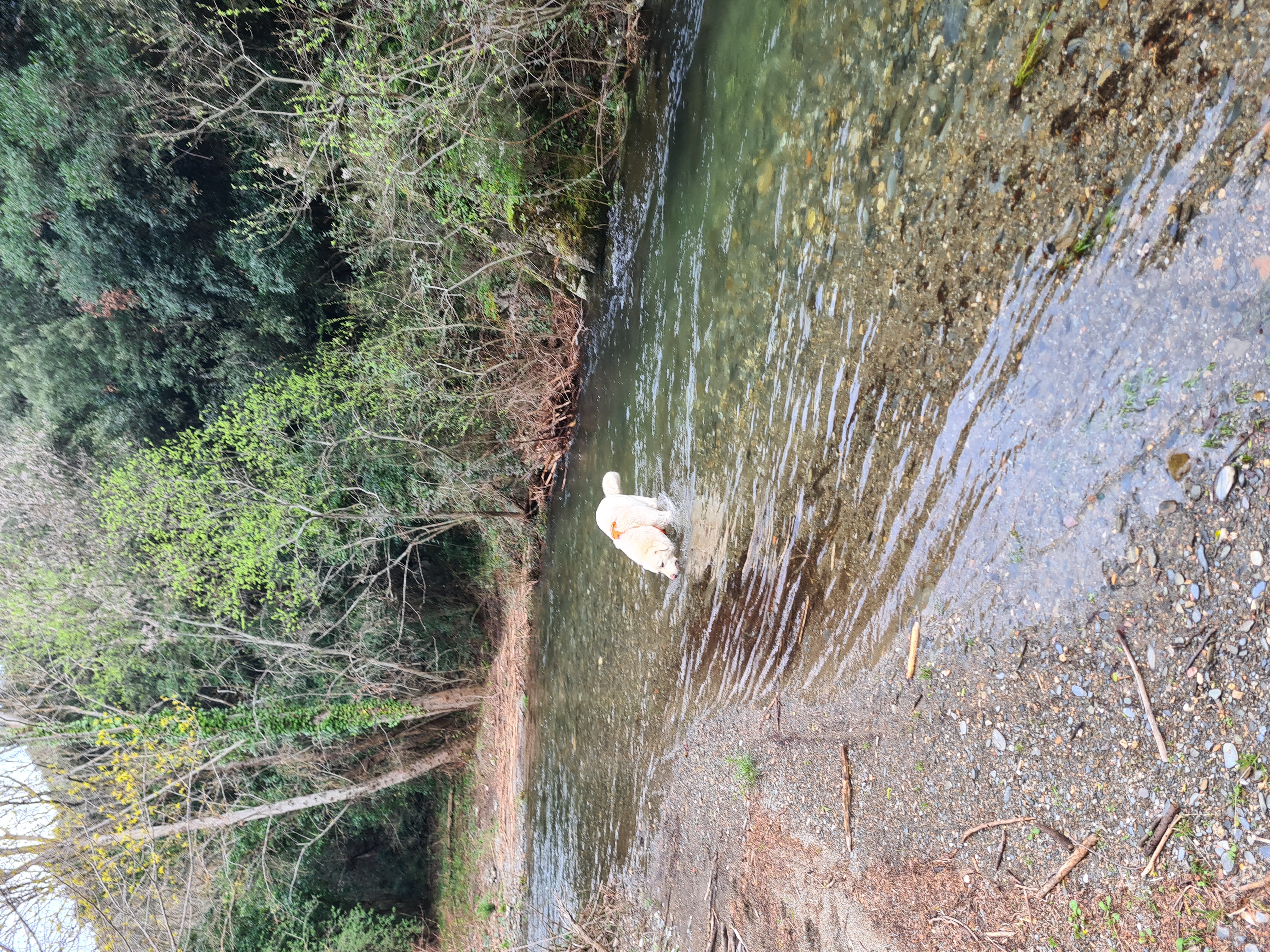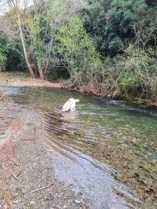 Petit bain pour Bosco dans la Clamoux au retour.