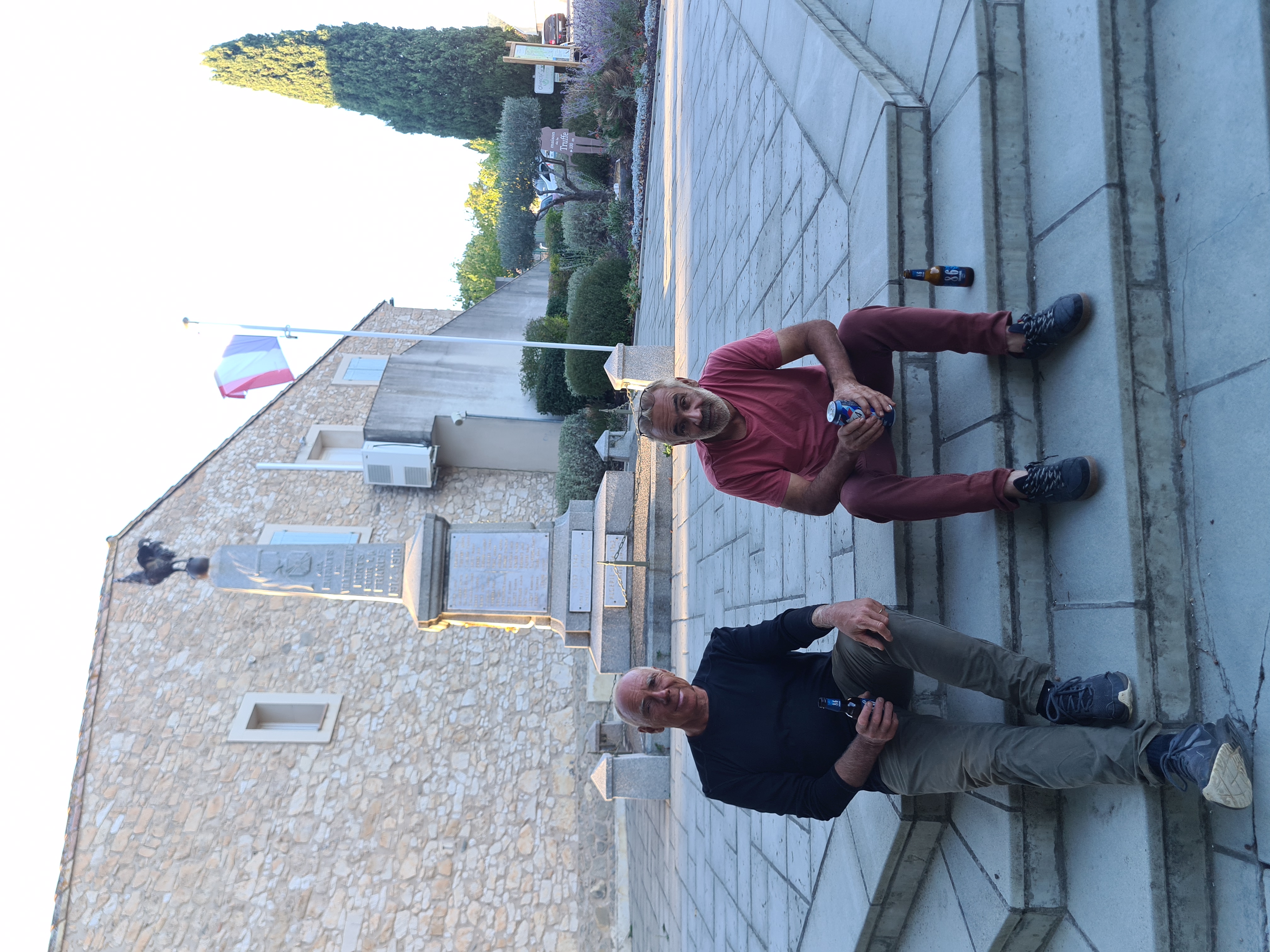 Villeneuve. Mais les bars étaient fermés (fin de saison précoce !), on se rabâtera vers l’épicerie qui offrait jusqu’à présent un petit coin snack en terrasse mais elle n’a plus le droit, le patron du bar l’a emmenée au tribunal pour concurrence déloyale. Clochemerle ! On dégustera nos bières sur les marches du monuments aux morts.