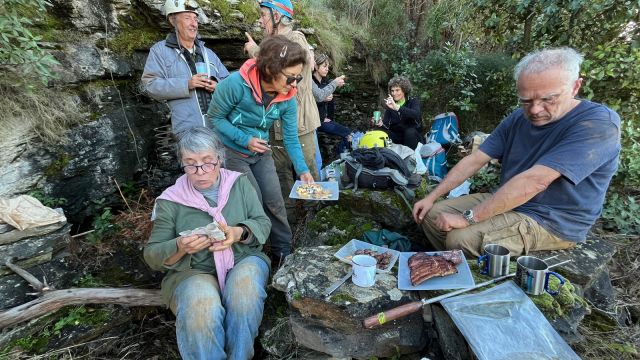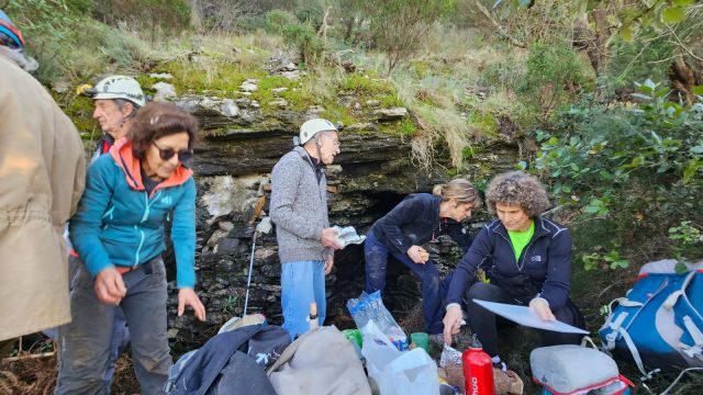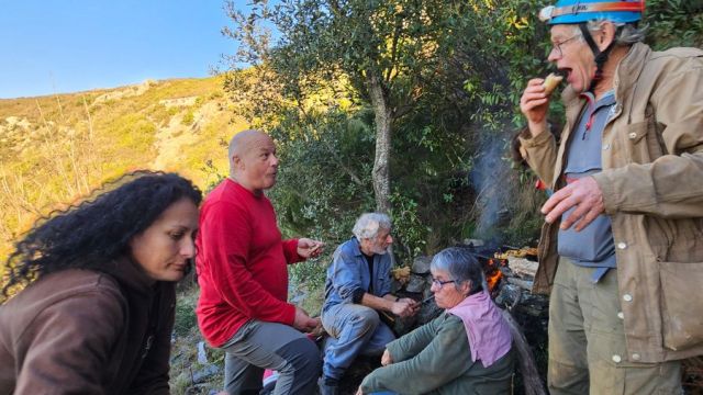 C’est maintenant la 3ème mi-temps, c’est l’heure de ripailler. Les topi aiment la nature et tous les plaisirs alimentaires qu’elle peut offrir. Pas moins de 3 figatelli et autres grillades, divers fromages, panette, panettone, chocolats permettent de quitter bien repus ce haut lieu de la spéléo insulaire.