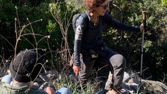 Heureusement, le Duster est équipé d’une vraie roue de secours et pas d’une galette ou d’une bombe anti-crevaison. Changement de la roue pendant que Ange tente de trouver le meilleur endroit pour entamer la marche d’approche. En effet, le maquis a bien poussé depuis 2011 et les souvenirs de Jean se sont un peu estompés. Heureusement, des photos prises à l’époque nous ont aidé à repérer déjà l’objectif, et à se décider pour un point de départ.